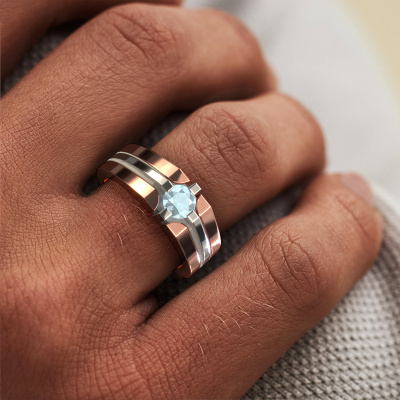 Dress to impress with this 2 Colours Kiro men's ring, because with the right ring you make a strong personal statement. This Kiro special men's ring is shown in 14 Carat rose gold. If this doesn't suit your style, feel free to customize the precious metal to your liking. After all, you want a men's ring that matches your style. A ring that truly suits you. One saying: This is who I am!As soon as you finished designing your Kiro men's ring with our online tool, our goldsmiths will start their creative process of making your ring. This will be done with passion and care, according ancient crafting. On top of that, our jewels are made of eco-friendly materials. Simply customize online with our online tool, if you want any changes made. If you want specific changes made to your Kiro men's ring, that are unavailable in our online tool, please feel free to contact our expert designers.Our team of talented, passionate designers add new ring designs to our online collection daily. Our objective in doing so, is to be able to offer you a wide variety of jewels. Please feel free to request a quote if you have specific wishes for your ring. We guarantee to make you an offer you can't refuse.Because we design and deliver our own rings, we can offer you a ring at a price you won't find anywhere else. A ring is made to order, which helps prevent excess supplies, so we can make you a great price offer. We understand it feels risky, buying your ring online, but we will gladly assist in the designing process, taking your budget into consideration.To make it easier for you, we offer a 30 day return policy. Check our terms and conditions.