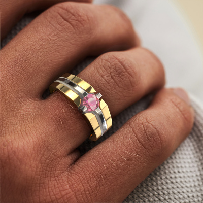 Dress to impress with this 2 Colours Kiro men's ring, because with the right ring you make a strong personal statement. This Kiro special men's ring is shown in 14 Carat gold. If this doesn't suit your style, feel free to customize the precious metal to your liking. After all, you want a men's ring that matches your style. A ring that truly suits you. One saying: This is who I am!As soon as you finished designing your Kiro men's ring with our online tool, our goldsmiths will start their creative process of making your ring. This will be done with passion and care, according ancient crafting. On top of that, our jewels are made of eco-friendly materials. Simply customize online with our online tool, if you want any changes made. If you want specific changes made to your Kiro men's ring, that are unavailable in our online tool, please feel free to contact our expert designers.Our team of talented, passionate designers add new ring designs to our online collection daily. Our objective in doing so, is to be able to offer you a wide variety of jewels. Please feel free to request a quote if you have specific wishes for your ring. We guarantee to make you an offer you can't refuse.Because we design and deliver our own rings, we can offer you a ring at a price you won't find anywhere else. A ring is made to order, which helps prevent excess supplies, so we can make you a great price offer. We understand it feels risky, buying your ring online, but we will gladly assist in the designing process, taking your budget into consideration.To make it easier for you, we offer a 30 day return policy. Check our terms and conditions.