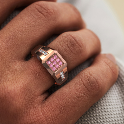 Dress to impress with this flat Bas pinky ring, because with the right ring you make a strong personal statement. This Bas edgy pinky ring is shown in 14 Carat rose gold. If this doesn't suit your style, feel free to customize the precious metal to your liking. After all, you want a pinky ring that matches your style. A ring that truly suits you. One saying: This is who I am!The edgy Bas men's ring, as shown here, can be customized to your liking. Our online tool offers many different options but please feel free to contact us if you want changes made to your Bas men's ring, which are unavailable in our online tool.Our talented designers add new designs to our online collection daily. Together they create a diverse collection of the finest jewellery. If you prefer to make a ring according your own design, please feel free to request a quote. We will make you an amazing offer, based on quality and price.Because we design and deliver our own rings, we can offer you a ring at a price you won't find anywhere else. A ring is made to order, which helps prevent excess supplies, so we can make you a great price offer. We understand it feels risky, buying your ring online, but we will gladly assist in the designing process, taking your budget into consideration.To make it easier for you, we offer a 30 day return policy. Check our terms and conditions.