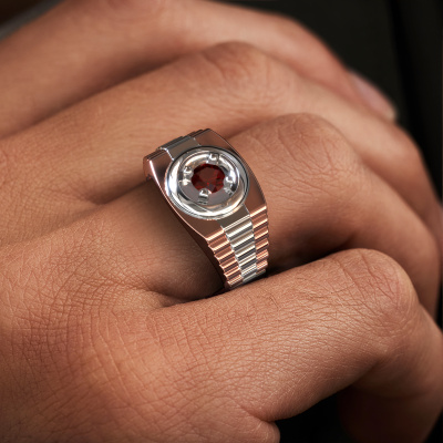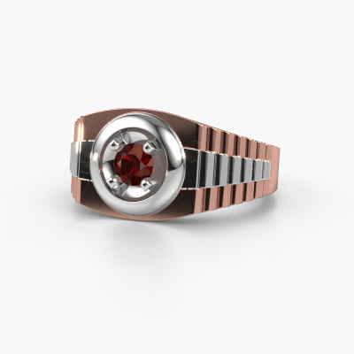Everyone knows the design of this well-known watch brand. With two colours of rose gold links, this solid 14 Carat rose gold Edward men's ring, is perfectly suited for trendy, successful men. A man who wants to dress to impress with a striking men's ring with 4.7 mm garnet. Show them what you are made of!How do you like this exclusive rose gold men's ring? Simply customize this Edward men's ring, using our online tool. Subsequently, your personal daring Edward men's ring will be made by hand by our goldsmiths. Precious metals and gemstones can be customized to your liking. Do you have specific preferences which are unavailable in our online tool? Please feel free to contact us. We will customize your personal exclusive men's ring to your liking.Our talented designers add new designs to our online collection daily. Together they create a diverse collection of the finest jewellery. If you prefer to make a ring according your own design, please feel free to request a quote. We will make you an amazing offer, based on quality and price.Because we design and deliver our own rings, we can offer you a ring at a price you won't find anywhere else. A ring is made to order, which helps prevent excess supplies, so we can make you a great price offer. We understand it feels risky, buying your ring online, but we will gladly assist in the designing process, taking your budget into consideration.To make it easier for you, we offer a 30 day return policy. Check our terms and conditions.