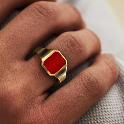 For the contemporary, stylish man that likes a bit of extravagance, we offer the flat 14 Carat gold Lars 1 light pinky ring with carnelian. Traditionally a pinky ring was worn as a sign of wealth. That is why a pink ring is perfectly suited for men who want to stand out. As soon as you finished designing your Lars 1 light signet ring with our online tool, our goldsmiths will start their creative process of making your ring. This will be done with passion and care, according ancient crafting. On top of that, our jewels are made of eco-friendly materials. Simply customize online with our online tool, if you want any changes made. If you want specific changes made to your Lars 1 light signet ring, that are unavailable in our online tool, please feel free to contact our expert designers.