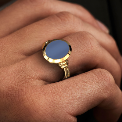 The oval Jake 2 signet ring with oval shape blue sardonyx stone top, as shown above, is filled with tradition. Customary, the signet ring was passed down from father to son. Start your own tradition with this oval gold signet ring. We are also more than happy to engrave your ring with a monogram or family crest. Please check our database for further inquiries and options. You can find the departments of our education centre at the bottom of this page. Start a new tradition with the traditional gold Jake 2 signet ring. As soon as you finished designing your Jake 2 signet ring with our online tool, our goldsmiths will start their creative process of making your ring. This will be done with passion and care, according ancient crafting. On top of that, our jewels are made of eco-friendly materials. Simply customize online with our online tool, if you want any changes made. If you want specific changes made to your Jake 2 signet ring, that are unavailable in our online tool, please feel free to contact our expert designers.New jewellery designs are added to our online collection daily. Our team of passionate designers strive to create extraordinary and diverse designs. Have you seen a ring you like? Please feel free to contact us. Based on a good price/ quality ratio, we will make you an offer you can't refuse!Are you on a budget? Please feel free to contact us, so we can go discuss your options. We offer our rings at guaranteed best price, because we make them to order. You won't find such a price anywhere else!To make it easier for you, we offer a 30 day return policy. Check our terms and conditions.