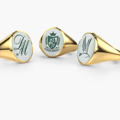 The solid Herman 4 signet ring with oval shape green sardonyx stone top, as shown above, is filled with tradition. Customary, the signet ring was passed down from father to son. Start your own tradition with this solid gold signet ring. We are also more than happy to engrave your ring with a monogram or family crest. Please check our database for further inquiries and options. You can find the departments of our education centre at the bottom of this page. Start a new tradition with the classic gold Herman 4 signet ring. As soon as you finished designing your Herman 4 signet ring with our online tool, our goldsmiths will start their creative process of making your ring. This will be done with passion and care, according ancient crafting. On top of that, our jewels are made of eco-friendly materials. Simply customize online with our online tool, if you want any changes made. If you want specific changes made to your Herman 4 signet ring, that are unavailable in our online tool, please feel free to contact our expert designers.Our team of talented, passionate designers add new ring designs to our online collection daily. Our objective in doing so, is to be able to offer you a wide variety of jewels. Please feel free to request a quote if you have specific wishes for your ring. We guarantee to make you an offer you can't refuse.Are you on a budget? Please feel free to contact us, so we can go discuss your options. We offer our rings at guaranteed best price, because we make them to order. You won't find such a price anywhere else!To make it easier for you, we offer a 30 day return policy. Check our terms and conditions.