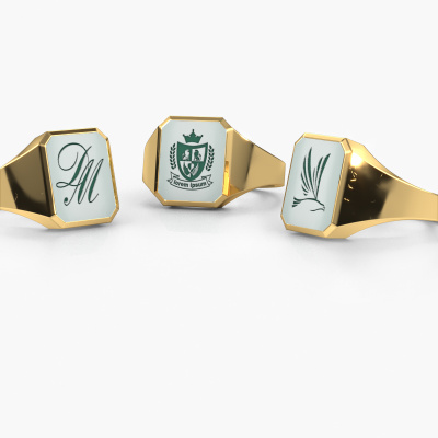The rectangular Lars 2 signet ring with octagon green sardonyx stone top, as shown above, is filled with tradition. Customary, the signet ring was passed down from father to son. Start your own tradition with this rectangular gold signet ring. We are also more than happy to engrave your ring with a monogram or family crest. Please check our database for further inquiries and options. You can find the departments of our education centre at the bottom of this page. Start a new tradition with the traditional gold Lars 2 signet ring. The affordable Lars 2 signet ring, as shown here, can be customized to your liking. Our online tool offers many different options but please feel free to contact us if you want changes made to your Lars 2 signet ring, which are unavailable in our online tool.Our team of talented, passionate designers add new ring designs to our online collection daily. Our objective in doing so, is to be able to offer you a wide variety of jewels. Please feel free to request a quote if you have specific wishes for your ring. We guarantee to make you an offer you can't refuse.By using our modern techniques, we can design and customize the finest quality jewels with the utmost care for you. Our rings are always priced 30 percent lower than other jewellers. We make rings to order, so we don't have to maintain a large stock. If you have a certain budget, we are more than happy to advice you accordingly.To make it easier for you, we offer a 30 day return policy. Check our terms and conditions.