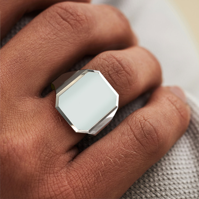 The solid Lars 5 signet ring with octagon green sardonyx stone top, as shown above, is filled with tradition. Customary, the signet ring was passed down from father to son. Start your own tradition with this solid platinum signet ring. We are also more than happy to engrave your ring with a monogram or family crest. Please check our database for further inquiries and options. You can find the departments of our education centre at the bottom of this page. Start a new tradition with the chic platinum Lars 5 signet ring. The luxury Lars 5 signet ring, as shown here, can be customized to your liking. Our online tool offers many different options but please feel free to contact us if you want changes made to your Lars 5 signet ring, which are unavailable in our online tool.New jewellery designs are added to our online collection daily. Our team of passionate designers strive to create extraordinary and diverse designs. Have you seen a ring you like? Please feel free to contact us. Based on a good price/ quality ratio, we will make you an offer you can't refuse!Because we design and deliver our own rings, we can offer you a ring at a price you won't find anywhere else. A ring is made to order, which helps prevent excess supplies, so we can make you a great price offer. We understand it feels risky, buying your ring online, but we will gladly assist in the designing process, taking your budget into consideration.To make it easier for you, we offer a 30 day return policy. Check our terms and conditions.