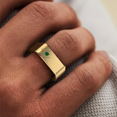 Dress to impress with this rectangular Dree 5 men's ring, because with the right ring you make a strong personal statement. This Dree 5 flat men's ring is shown in 14 Carat gold. If this doesn't suit your style, feel free to customize the precious metal to your liking. After all, you want a men's ring that matches your style. A ring that truly suits you. One saying: This is who I am!As soon as you finished designing your Dree 5 men's ring with our online tool, our goldsmiths will start their creative process of making your ring. This will be done with passion and care, according ancient crafting. On top of that, our jewels are made of eco-friendly materials. Simply customize online with our online tool, if you want any changes made. If you want specific changes made to your Dree 5 men's ring, that are unavailable in our online tool, please feel free to contact our expert designers.Our team of talented, passionate designers add new ring designs to our online collection daily. Our objective in doing so, is to be able to offer you a wide variety of jewels. Please feel free to request a quote if you have specific wishes for your ring. We guarantee to make you an offer you can't refuse.Are you on a budget? Please feel free to contact us, so we can go discuss your options. We offer our rings at guaranteed best price, because we make them to order. You won't find such a price anywhere else!To make it easier for you, we offer a 30 day return policy. Check our terms and conditions.