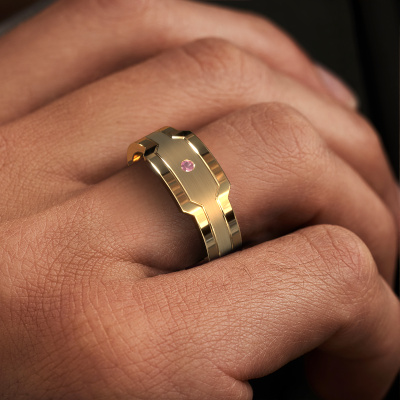 Dress to impress with this 2 Colours Guido men's ring, because with the right ring you make a strong personal statement. This Guido edgy men's ring is shown in 14 Carat gold. If this doesn't suit your style, feel free to customize the precious metal to your liking. After all, you want a men's ring that matches your style. A ring that truly suits you. One saying: This is who I am!As soon as you finished designing your Guido men's ring with our online tool, our goldsmiths will start their creative process of making your ring. This will be done with passion and care, according ancient crafting. On top of that, our jewels are made of eco-friendly materials. Simply customize online with our online tool, if you want any changes made. If you want specific changes made to your Guido men's ring, that are unavailable in our online tool, please feel free to contact our expert designers.Our team of talented, passionate designers add new ring designs to our online collection daily. Our objective in doing so, is to be able to offer you a wide variety of jewels. Please feel free to request a quote if you have specific wishes for your ring. We guarantee to make you an offer you can't refuse.Because we design and deliver our own rings, we can offer you a ring at a price you won't find anywhere else. A ring is made to order, which helps prevent excess supplies, so we can make you a great price offer. We understand it feels risky, buying your ring online, but we will gladly assist in the designing process, taking your budget into consideration.To make it easier for you, we offer a 30 day return policy. Check our terms and conditions.