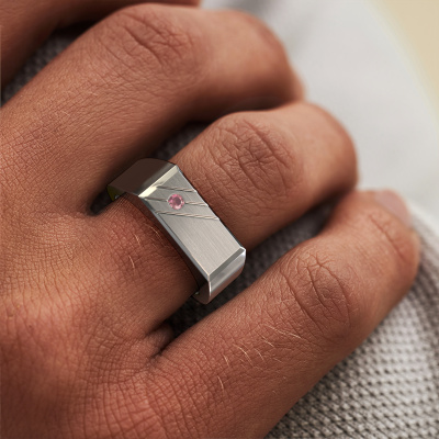 Dress to impress with this rectangular Dree 5 men's ring, because with the right ring you make a strong personal statement. This Dree 5 flat men's ring is shown in platinum. If this doesn't suit your style, feel free to customize the precious metal to your liking. After all, you want a men's ring that matches your style. A ring that truly suits you. One saying: This is who I am!As soon as you finished designing your Dree 5 men's ring with our online tool, our goldsmiths will start their creative process of making your ring. This will be done with passion and care, according ancient crafting. On top of that, our jewels are made of eco-friendly materials. Simply customize online with our online tool, if you want any changes made. If you want specific changes made to your Dree 5 men's ring, that are unavailable in our online tool, please feel free to contact our expert designers.Our team of talented, passionate designers add new ring designs to our online collection daily. Our objective in doing so, is to be able to offer you a wide variety of jewels. Please feel free to request a quote if you have specific wishes for your ring. We guarantee to make you an offer you can't refuse.Are you on a budget? Please feel free to contact us, so we can go discuss your options. We offer our rings at guaranteed best price, because we make them to order. You won't find such a price anywhere else!To make it easier for you, we offer a 30 day return policy. Check our terms and conditions.