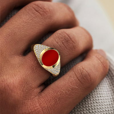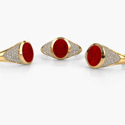 The oval Giovani pinky ring with oval shape carnelian stone top, as shown above, is filled with tradition. Customary, the pinky ring was passed down from father to son. Start your own tradition with this oval gold pinky ring. We are also more than happy to engrave your ring with a monogram or family crest. Please check our database for further inquiries and options. You can find the departments of our education centre at the bottom of this page. Start a new tradition with the exclusive gold Giovani pinky ring. Our goldsmiths passionately create your customized signet ring to your liking with the utmost care. The gold signet ring, as shown here, can be customized using our online tool. Feel free to ask our jewel designers for assistance if you want changes made which are unavailable in our online tool. We are happy to answer your questions.New jewellery designs are added to our online collection daily. Our team of passionate designers strive to create extraordinary and diverse designs. Have you seen a ring you like? Please feel free to contact us. Based on a good price/ quality ratio, we will make you an offer you can't refuse!Are you on a budget? Please feel free to contact us, so we can go discuss your options. We offer our rings at guaranteed best price, because we make them to order. You won't find such a price anywhere else!To make it easier for you, we offer a 30 day return policy. Check our terms and conditions.