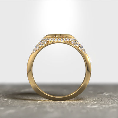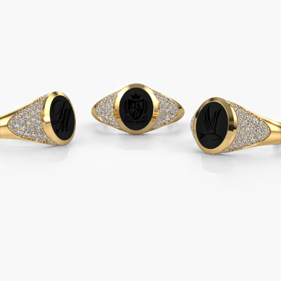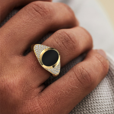 The oval Giovani pinky ring with oval shape onyx stone top, as shown above, is filled with tradition. Customary, the pinky ring was passed down from father to son. Start your own tradition with this oval gold pinky ring. We are also more than happy to engrave your ring with a monogram or family crest. Please check our database for further inquiries and options. You can find the departments of our education centre at the bottom of this page. Start a new tradition with the exclusive gold Giovani pinky ring. Our goldsmiths passionately create your customized signet ring to your liking with the utmost care. The gold signet ring, as shown here, can be customized using our online tool. Feel free to ask our jewel designers for assistance if you want changes made which are unavailable in our online tool. We are happy to answer your questions.New jewellery designs are added to our online collection daily. Our team of passionate designers strive to create extraordinary and diverse designs. Have you seen a ring you like? Please feel free to contact us. Based on a good price/ quality ratio, we will make you an offer you can't refuse!Are you on a budget? Please feel free to contact us, so we can go discuss your options. We offer our rings at guaranteed best price, because we make them to order. You won't find such a price anywhere else!To make it easier for you, we offer a 30 day return policy. Check our terms and conditions.