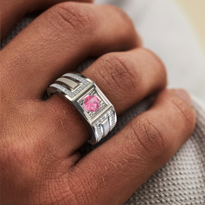 Are you looking for a unique platinum men's ring that is slightly different? Then our rectangular platinum pink sapphire set Lando men's ring is the perfect ring for you! This ring, as shown here, is made of platinum but feel free to customize to your liking. Show them what you are all about with this platinum pink sapphire Lando men's ring, a ring for ambitious men. How do you like this unique platinum men's ring? Simply customize this Lando men's ring, using our online tool. Subsequently, your personal royal Lando men's ring will be made by hand by our goldsmiths. Precious metals and gemstones can be customized to your liking. Do you have specific preferences which are unavailable in our online tool? Please feel free to contact us. We will customize your personal unique men's ring to your liking.New jewellery designs are added to our online collection daily. Our team of passionate designers strive to create extraordinary and diverse designs. Have you seen a ring you like? Please feel free to contact us. Based on a good price/ quality ratio, we will make you an offer you can't refuse!Because we design and deliver our own rings, we can offer you a ring at a price you won't find anywhere else. A ring is made to order, which helps prevent excess supplies, so we can make you a great price offer. We understand it feels risky, buying your ring online, but we will gladly assist in the designing process, taking your budget into consideration.To make it easier for you, we offer a 30 day return policy. Check our terms and conditions.