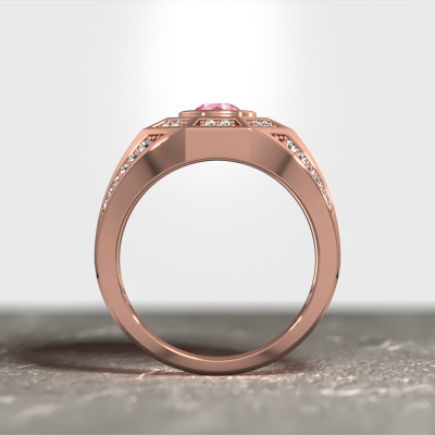 Are you looking for a modern rose gold men's ring that is slightly different? Then our heavy rose gold pink sapphire set Enzo men's ring is the perfect ring for you! This ring, as shown here, is made of rose gold but feel free to customize to your liking. Show them what you are all about with this rose gold pink sapphire Enzo men's ring, a ring for ambitious men. Customize your own special Enzo men's ring, which will then be created by our goldsmiths with great passion. Do you prefer a different option than is shown here in the rose gold Enzo men's ring? Then our online tools offers various options. Feel free to ask us for help if you are unable to succeed. We are happy to answer your questions!Our team of talented, passionate designers add new ring designs to our online collection daily. Our objective in doing so, is to be able to offer you a wide variety of jewels. Please feel free to request a quote if you have specific wishes for your ring. We guarantee to make you an offer you can't refuse.After receiving your order, our goldsmiths will start the creative process of making your Enzo ring. We don't keep stock. This is advantageous because these costs will not be passed on to you. Therefore, we can offer jewellery at exceptionally low prices.To make it easier for you, we offer a 30 day return policy. Check our terms and conditions.