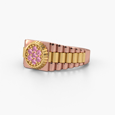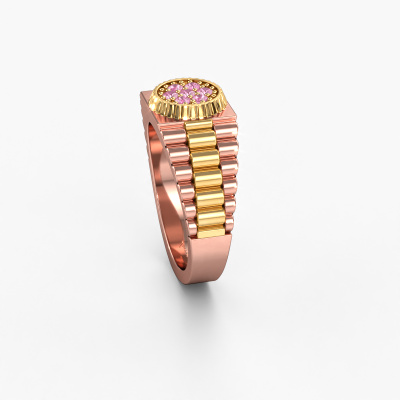 Everyone knows the design of this well-known watch brand. With two colours of rose gold links, this solid 14 Carat rose gold Nout men's ring, is perfectly suited for trendy, successful men. A man who wants to dress to impress with a striking men's ring with 2 mm pink sapphire. Show them what you are made of!Our goldsmiths passionately create your customized men's ring to your liking with the utmost care. The rose gold men's ring, as shown here, can be customized using our online tool. Feel free to ask our jewel designers for assistance if you want changes made which are unavailable in our online tool. We are happy to answer your questions.New jewellery designs are added to our online collection daily. Our team of passionate designers strive to create extraordinary and diverse designs. Have you seen a ring you like? Please feel free to contact us. Based on a good price/ quality ratio, we will make you an offer you can't refuse!By using our modern techniques, we can design and customize the finest quality jewels with the utmost care for you. Our rings are always priced 30 percent lower than other jewellers. We make rings to order, so we don't have to maintain a large stock. If you have a certain budget, we are more than happy to advice you accordingly.To make it easier for you, we offer a 30 day return policy. Check our terms and conditions.