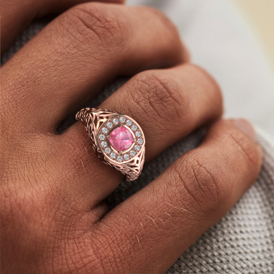 Dress to impress with this wide Quinten men's ring, because with the right ring you make a strong personal statement. This Quinten special men's ring is shown in 14 Carat rose gold. If this doesn't suit your style, feel free to customize the precious metal to your liking. After all, you want a men's ring that matches your style. A ring that truly suits you. One saying: This is who I am!As soon as you finished designing your Quinten men's ring with our online tool, our goldsmiths will start their creative process of making your ring. This will be done with passion and care, according ancient crafting. On top of that, our jewels are made of eco-friendly materials. Simply customize online with our online tool, if you want any changes made. If you want specific changes made to your Quinten men's ring, that are unavailable in our online tool, please feel free to contact our expert designers.