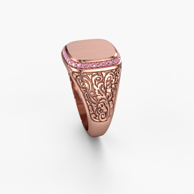 Dress to impress with this heavy Jesse 2 men's ring, because with the right ring you make a strong personal statement. This Jesse 2 special men's ring is shown in 14 Carat rose gold. If this doesn't suit your style, feel free to customize the precious metal to your liking. After all, you want a men's ring that matches your style. A ring that truly suits you. One saying: This is who I am!The best part of this special signet ring is that you can customize it to your own liking. Your style, your choice, your signet ring. On top of that, your vintage rose gold signet ring will be made by hand with eco-friendly materials! Please feel free to easily customize the ring, using our online tool. Of course, you can always contact us. We will gladly help you compiling your vintage signet ring. Is there a design you like, but you would like to customize it with a gemstone we do not offer on our website, then please contact us. We're happy to tell you about the possibilities.