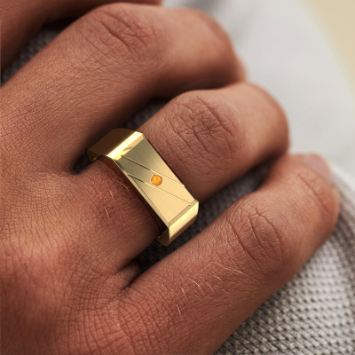 Dress to impress with this rectangular Dree 3 men's ring, because with the right ring you make a strong personal statement. This Dree 3 elegant men's ring is shown in 14 Carat gold. If this doesn't suit your style, feel free to customize the precious metal to your liking. After all, you want a men's ring that matches your style. A ring that truly suits you. One saying: This is who I am!Customize your own elegant Dree 3 men's ring, which will then be created by our goldsmiths with great passion. Do you prefer a different option than is shown here in the gold Dree 3 men's ring? Then our online tools offers various options. Feel free to ask us for help if you are unable to succeed. We are happy to answer your questions!Our team of talented, passionate designers add new ring designs to our online collection daily. Our objective in doing so, is to be able to offer you a wide variety of jewels. Please feel free to request a quote if you have specific wishes for your ring. We guarantee to make you an offer you can't refuse.After receiving your order, our goldsmiths will passionately start the creative process of making your ring in our own studio. Because we don't have a big stockpile, these costs will not be passed on to you. Our pricing is proof of that! We offer top quality jewels at lowest price, guaranteed.To make it easier for you, we offer a 30 day return policy. Check our terms and conditions.