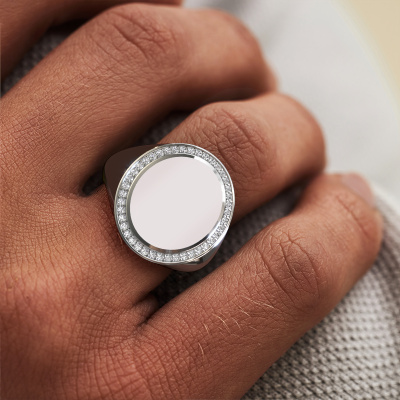 The oval Adam 5 signet ring with oval shape red sardonyx stone top, as shown above, is filled with tradition. Customary, the signet ring was passed down from father to son. Start your own tradition with this oval platinum signet ring. We are also more than happy to engrave your ring with a monogram or family crest. Please check our database for further inquiries and options. You can find the departments of our education centre at the bottom of this page. Start a new tradition with the exclusive platinum Adam 5 signet ring. The diamonds Adam 5 signet ring, as shown here, can be customized to your liking. Our online tool offers many different options but please feel free to contact us if you want changes made to your Adam 5 signet ring, which are unavailable in our online tool.Our talented designers add new designs to our online collection daily. Together they create a diverse collection of the finest jewellery. If you prefer to make a ring according your own design, please feel free to request a quote. We will make you an amazing offer, based on quality and price.After receiving your order, our goldsmiths will start the creative process of making your Adam 5 ring. We don't keep stock. This is advantageous because these costs will not be passed on to you. Therefore, we can offer jewellery at exceptionally low prices.To make it easier for you, we offer a 30 day return policy. Check our terms and conditions.