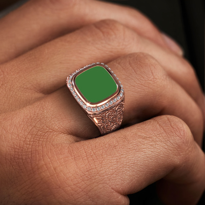 The square Jesse 3 men's ring with square green enamel stone top, as shown above, is filled with tradition. Customary, the men's ring was passed down from father to son. Start your own tradition with this square rose gold men's ring. We are also more than happy to engrave your ring with a monogram or family crest. Please check our database for further inquiries and options. You can find the departments of our education centre at the bottom of this page. Start a new tradition with the Celtic rose gold Jesse 3 men's ring. How do you like this Celtic rose gold signet ring? Simply customize this Jesse 3 signet ring, using our online tool. Subsequently, your personal crests Jesse 3 signet ring will be made by hand by our goldsmiths. Precious metals and gemstones can be customized to your liking. Do you have specific preferences which are unavailable in our online tool? Please feel free to contact us. We will customize your personal Celtic signet ring to your liking.Our talented designers add new designs to our online collection daily. Together they create a diverse collection of the finest jewellery. If you prefer to make a ring according your own design, please feel free to request a quote. We will make you an amazing offer, based on quality and price.By using a combination of the latest modern techniques, combined with ancient crafting, we can make all our rings in our own studio. Each jewel is made to order. This is advantageous because we can offer you a price you won't find anywhere else.To make it easier for you, we offer a 30 day return policy. Check our terms and conditions.