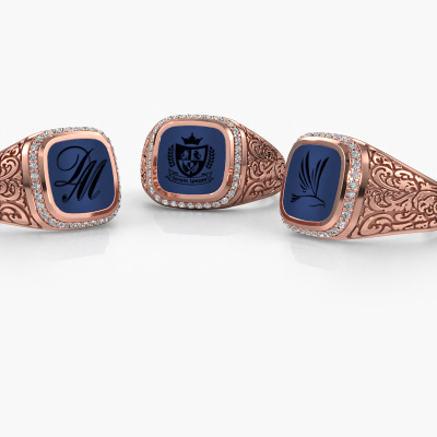 The square Jesse 3 men's ring with square lapis stone top, as shown above, is filled with tradition. Customary, the men's ring was passed down from father to son. Start your own tradition with this square rose gold men's ring. We are also more than happy to engrave your ring with a monogram or family crest. Please check our database for further inquiries and options. You can find the departments of our education centre at the bottom of this page. Start a new tradition with the Celtic rose gold Jesse 3 men's ring. How do you like this Celtic rose gold signet ring? Simply customize this Jesse 3 signet ring, using our online tool. Subsequently, your personal crests Jesse 3 signet ring will be made by hand by our goldsmiths. Precious metals and gemstones can be customized to your liking. Do you have specific preferences which are unavailable in our online tool? Please feel free to contact us. We will customize your personal Celtic signet ring to your liking.Our talented designers add new designs to our online collection daily. Together they create a diverse collection of the finest jewellery. If you prefer to make a ring according your own design, please feel free to request a quote. We will make you an amazing offer, based on quality and price.By using a combination of the latest modern techniques, combined with ancient crafting, we can make all our rings in our own studio. Each jewel is made to order. This is advantageous because we can offer you a price you won't find anywhere else.To make it easier for you, we offer a 30 day return policy. Check our terms and conditions.