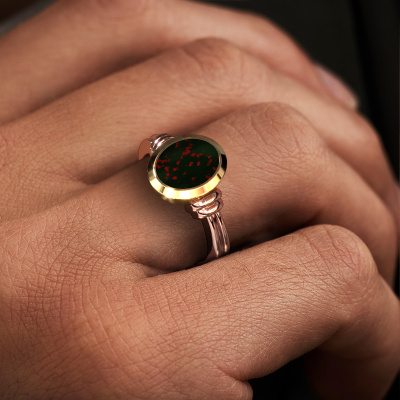 For the contemporary, stylish man that likes a bit of extravagance, we offer the solid 14 Carat rose gold Jake 1 pinky ring with bloodstone. Traditionally a pinky ring was worn as a sign of wealth. That is why a pink ring is perfectly suited for men who want to stand out. Customize your own best prices Jake 1 signet ring, which will then be created by our goldsmiths with great passion. Do you prefer a different option than is shown here in the rose gold Jake 1 signet ring? Then our online tools offers various options. Feel free to ask us for help if you are unable to succeed. We are happy to answer your questions!New jewellery designs are added to our online collection daily. Our team of passionate designers strive to create extraordinary and diverse designs. Have you seen a ring you like? Please feel free to contact us. Based on a good price/ quality ratio, we will make you an offer you can't refuse!After receiving your order, our goldsmiths will start the creative process of making your Jake 1 ring. We don't keep stock. This is advantageous because these costs will not be passed on to you. Therefore, we can offer jewellery at exceptionally low prices.To make it easier for you, we offer a 30 day return policy. Check our terms and conditions.