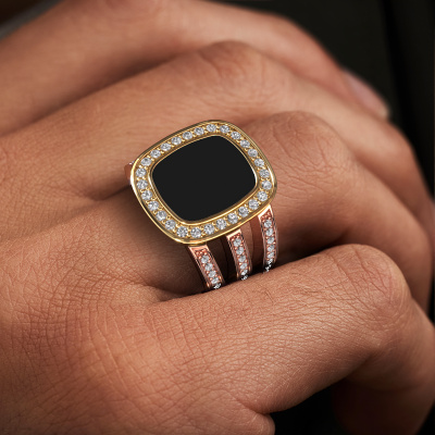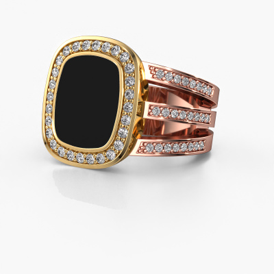 The wide Tijn signet ring with rectangle antique black enamel stone top, as shown above, is filled with tradition. Customary, the signet ring was passed down from father to son. Start your own tradition with this wide rose gold signet ring. We are also more than happy to engrave your ring with a monogram or family crest. Please check our database for further inquiries and options. You can find the departments of our education centre at the bottom of this page. Start a new tradition with the exclusive rose gold Tijn signet ring. The special Tijn signet ring, as shown here, can be customized to your liking. Our online tool offers many different options but please feel free to contact us if you want changes made to your Tijn signet ring, which are unavailable in our online tool.New jewellery designs are added to our online collection daily. Our team of passionate designers strive to create extraordinary and diverse designs. Have you seen a ring you like? Please feel free to contact us. Based on a good price/ quality ratio, we will make you an offer you can't refuse!After receiving your order, our goldsmiths will start the creative process of making your Tijn ring. We don't keep stock. This is advantageous because these costs will not be passed on to you. Therefore, we can offer jewellery at exceptionally low prices.To make it easier for you, we offer a 30 day return policy. Check our terms and conditions.