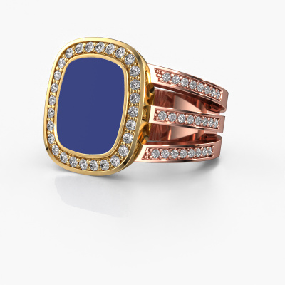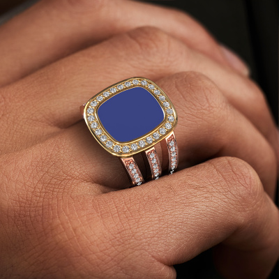 The wide Tijn signet ring with rectangle antique blue enamel stone top, as shown above, is filled with tradition. Customary, the signet ring was passed down from father to son. Start your own tradition with this wide rose gold signet ring. We are also more than happy to engrave your ring with a monogram or family crest. Please check our database for further inquiries and options. You can find the departments of our education centre at the bottom of this page. Start a new tradition with the exclusive rose gold Tijn signet ring. The special Tijn signet ring, as shown here, can be customized to your liking. Our online tool offers many different options but please feel free to contact us if you want changes made to your Tijn signet ring, which are unavailable in our online tool.New jewellery designs are added to our online collection daily. Our team of passionate designers strive to create extraordinary and diverse designs. Have you seen a ring you like? Please feel free to contact us. Based on a good price/ quality ratio, we will make you an offer you can't refuse!After receiving your order, our goldsmiths will start the creative process of making your Tijn ring. We don't keep stock. This is advantageous because these costs will not be passed on to you. Therefore, we can offer jewellery at exceptionally low prices.To make it easier for you, we offer a 30 day return policy. Check our terms and conditions.