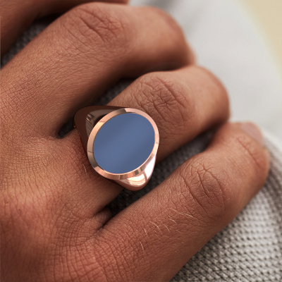 The solid Herman 4 signet ring with oval shape blue sardonyx stone top, as shown above, is filled with tradition. Customary, the signet ring was passed down from father to son. Start your own tradition with this solid rose gold signet ring. We are also more than happy to engrave your ring with a monogram or family crest. Please check our database for further inquiries and options. You can find the departments of our education centre at the bottom of this page. Start a new tradition with the classic rose gold Herman 4 signet ring. As soon as you finished designing your Herman 4 signet ring with our online tool, our goldsmiths will start their creative process of making your ring. This will be done with passion and care, according ancient crafting. On top of that, our jewels are made of eco-friendly materials. Simply customize online with our online tool, if you want any changes made. If you want specific changes made to your Herman 4 signet ring, that are unavailable in our online tool, please feel free to contact our expert designers.Our team of talented, passionate designers add new ring designs to our online collection daily. Our objective in doing so, is to be able to offer you a wide variety of jewels. Please feel free to request a quote if you have specific wishes for your ring. We guarantee to make you an offer you can't refuse.Are you on a budget? Please feel free to contact us, so we can go discuss your options. We offer our rings at guaranteed best price, because we make them to order. You won't find such a price anywhere else!To make it easier for you, we offer a 30 day return policy. Check our terms and conditions.