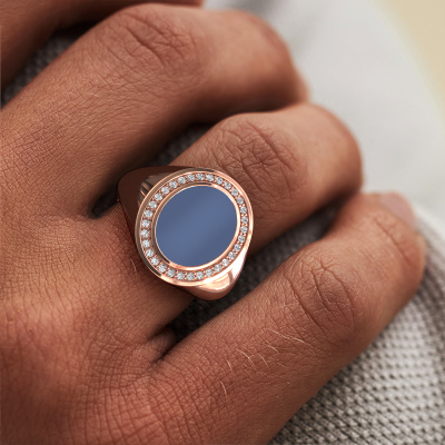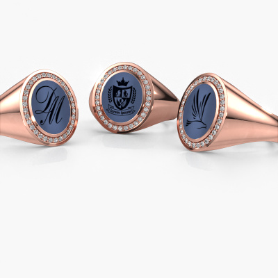 The oval Adam 2 signet ring with oval shape blue sardonyx stone top, as shown above, is filled with tradition. Customary, the signet ring was passed down from father to son. Start your own tradition with this oval rose gold signet ring. We are also more than happy to engrave your ring with a monogram or family crest. Please check our database for further inquiries and options. You can find the departments of our education centre at the bottom of this page. Start a new tradition with the exclusive rose gold Adam 2 signet ring. The diamonds Adam 2 signet ring, as shown here, can be customized to your liking. Our online tool offers many different options but please feel free to contact us if you want changes made to your Adam 2 signet ring, which are unavailable in our online tool.Our talented designers add new designs to our online collection daily. Together they create a diverse collection of the finest jewellery. If you prefer to make a ring according your own design, please feel free to request a quote. We will make you an amazing offer, based on quality and price.After receiving your order, our goldsmiths will start the creative process of making your Adam 2 ring. We don't keep stock. This is advantageous because these costs will not be passed on to you. Therefore, we can offer jewellery at exceptionally low prices.To make it easier for you, we offer a 30 day return policy. Check our terms and conditions.