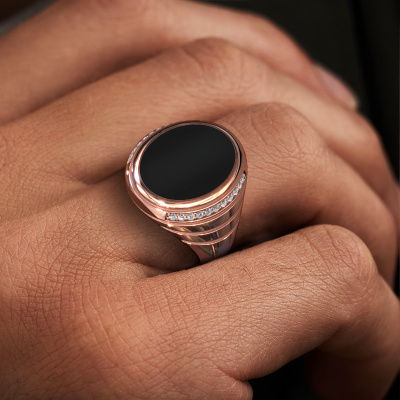 The solid Luuk signet ring with oval shape onyx stone top, as shown above, is filled with tradition. Customary, the signet ring was passed down from father to son. Start your own tradition with this solid rose gold signet ring. We are also more than happy to engrave your ring with a monogram or family crest. Please check our database for further inquiries and options. You can find the departments of our education centre at the bottom of this page. Start a new tradition with the unique rose gold Luuk signet ring. How do you like this unique rose gold signet ring? Simply customize this Luuk signet ring, using our online tool. Subsequently, your personal special Luuk signet ring will be made by hand by our goldsmiths. Precious metals and gemstones can be customized to your liking. Do you have specific preferences which are unavailable in our online tool? Please feel free to contact us. We will customize your personal unique signet ring to your liking.New jewellery designs are added to our online collection daily. Our team of passionate designers strive to create extraordinary and diverse designs. Have you seen a ring you like? Please feel free to contact us. Based on a good price/ quality ratio, we will make you an offer you can't refuse!By using a combination of the latest modern techniques, combined with ancient crafting, we can make all our rings in our own studio. Each jewel is made to order. This is advantageous because we can offer you a price you won't find anywhere else.To make it easier for you, we offer a 30 day return policy. Check our terms and conditions.