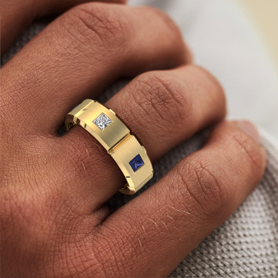 Dress to impress with this rectangular Steve men's ring, because with the right ring you make a strong personal statement. This Steve royal men's ring is shown in 14 Carat gold. If this doesn't suit your style, feel free to customize the precious metal to your liking. After all, you want a men's ring that matches your style. A ring that truly suits you. One saying: This is who I am!Our goldsmiths passionately create your customized men's ring to your liking with the utmost care. The gold men's ring, as shown here, can be customized using our online tool. Feel free to ask our jewel designers for assistance if you want changes made which are unavailable in our online tool. We are happy to answer your questions.Our team of talented, passionate designers add new ring designs to our online collection daily. Our objective in doing so, is to be able to offer you a wide variety of jewels. Please feel free to request a quote if you have specific wishes for your ring. We guarantee to make you an offer you can't refuse.After receiving your order, our goldsmiths will start the creative process of making your Steve ring. We don't keep stock. This is advantageous because these costs will not be passed on to you. Therefore, we can offer jewellery at exceptionally low prices.To make it easier for you, we offer a 30 day return policy. Check our terms and conditions.