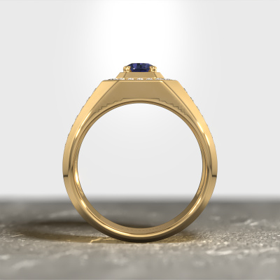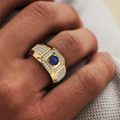 Are you looking for a modern gold men's ring that is slightly different? Then our wide gold sapphire set Pavan men's ring is the perfect ring for you! This ring, as shown here, is made of gold but feel free to customize to your liking. Show them what you are all about with this gold sapphire Pavan men's ring, a ring for ambitious men. The royal Pavan men's ring, as shown here, can be customized to your liking. Our online tool offers many different options but please feel free to contact us if you want changes made to your Pavan men's ring, which are unavailable in our online tool.