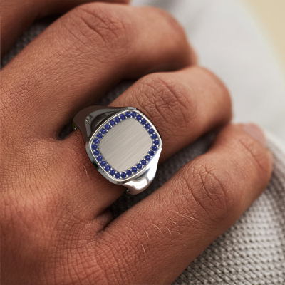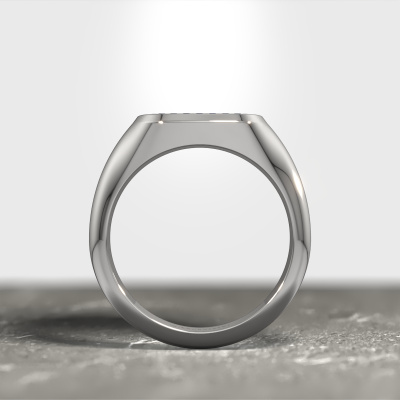 Dress to impress with this flat Floris Cushion 3 men's ring, because with the right ring you make a strong personal statement. This Floris Cushion 3 monogram men's ring is shown in platinum. If this doesn't suit your style, feel free to customize the precious metal to your liking. After all, you want a men's ring that matches your style. A ring that truly suits you. One saying: This is who I am!How do you like this modern platinum signet ring? Simply customize this Floris Cushion 3 signet ring, using our online tool. Subsequently, your personal monograms Floris Cushion 3 signet ring will be made by hand by our goldsmiths. Precious metals and gemstones can be customized to your liking. Do you have specific preferences which are unavailable in our online tool? Please feel free to contact us. We will customize your personal modern signet ring to your liking.