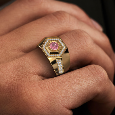 Are you looking for a exclusive gold men's ring that is slightly different? Then our wide gold tourmaline pink set Sjoerd men's ring is the perfect ring for you! This ring, as shown here, is made of gold but feel free to customize to your liking. Show them what you are all about with this gold tourmaline pink Sjoerd men's ring, a ring for ambitious men. As soon as you finished designing your Sjoerd men's ring with our online tool, our goldsmiths will start their creative process of making your ring. This will be done with passion and care, according ancient crafting. On top of that, our jewels are made of eco-friendly materials. Simply customize online with our online tool, if you want any changes made. If you want specific changes made to your Sjoerd men's ring, that are unavailable in our online tool, please feel free to contact our expert designers.Our team of talented, passionate designers add new ring designs to our online collection daily. Our objective in doing so, is to be able to offer you a wide variety of jewels. Please feel free to request a quote if you have specific wishes for your ring. We guarantee to make you an offer you can't refuse.By using our modern techniques, we can design and customize the finest quality jewels with the utmost care for you. Our rings are always priced 30 percent lower than other jewellers. We make rings to order, so we don't have to maintain a large stock. If you have a certain budget, we are more than happy to advice you accordingly.To make it easier for you, we offer a 30 day return policy. Check our terms and conditions.