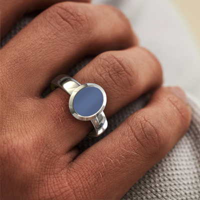 The oval Oscar 1 pinky ring with oval shape blue sardonyx stone top, as shown above, is filled with tradition. Customary, the pinky ring was passed down from father to son. Start your own tradition with this oval platinum pinky ring. We are also more than happy to engrave your ring with a monogram or family crest. Please check our database for further inquiries and options. You can find the departments of our education centre at the bottom of this page. Start a new tradition with the trendy platinum Oscar 1 pinky ring. The best part of this elegant signet ring is that you can customize it to your own liking. Your style, your choice, your signet ring. On top of that, your trendy platinum signet ring will be made by hand with eco-friendly materials! Please feel free to easily customize the ring, using our online tool. Of course, you can always contact us. We will gladly help you compiling your trendy signet ring. Is there a design you like, but you would like to customize it with a gemstone we do not offer on our website, then please contact us. We're happy to tell you about the possibilities.