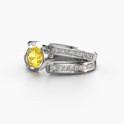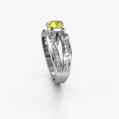 The heavy Rowan men's ring with round yellow sapphire stone top, as shown above, is filled with tradition. Customary, the men's ring was passed down from father to son. Start your own tradition with this heavy white gold men's ring. We are also more than happy to engrave your ring with a monogram or family crest. Please check our database for further inquiries and options. You can find the departments of our education centre at the bottom of this page. Start a new tradition with the contemporary white gold Rowan men's ring. Our goldsmiths passionately create your customized men's ring to your liking with the utmost care. The white gold men's ring, as shown here, can be customized using our online tool. Feel free to ask our jewel designers for assistance if you want changes made which are unavailable in our online tool. We are happy to answer your questions.Our talented designers add new designs to our online collection daily. Together they create a diverse collection of the finest jewellery. If you prefer to make a ring according your own design, please feel free to request a quote. We will make you an amazing offer, based on quality and price.By using our modern techniques, we can design and customize the finest quality jewels with the utmost care for you. Our rings are always priced 30 percent lower than other jewellers. We make rings to order, so we don't have to maintain a large stock. If you have a certain budget, we are more than happy to advice you accordingly.To make it easier for you, we offer a 30 day return policy. Check our terms and conditions.