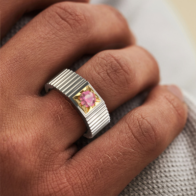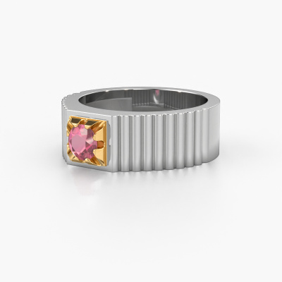 For the contemporary, stylish man that likes a bit of extravagance, we offer the heavy 14 Carat white gold Elias pinky ring with tourmaline pink. Traditionally a pinky ring was worn as a sign of wealth. That is why a pink ring is perfectly suited for men who want to stand out. How do you like this modern white gold men's ring? Simply customize this Elias men's ring, using our online tool. Subsequently, your personal best prices Elias men's ring will be made by hand by our goldsmiths. Precious metals and gemstones can be customized to your liking. Do you have specific preferences which are unavailable in our online tool? Please feel free to contact us. We will customize your personal modern men's ring to your liking.