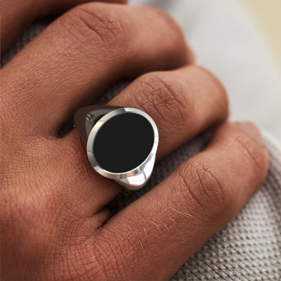 The solid Herman 4 signet ring with oval shape black enamel stone top, as shown above, is filled with tradition. Customary, the signet ring was passed down from father to son. Start your own tradition with this solid white gold signet ring. We are also more than happy to engrave your ring with a monogram or family crest. Please check our database for further inquiries and options. You can find the departments of our education centre at the bottom of this page. Start a new tradition with the classic white gold Herman 4 signet ring. As soon as you finished designing your Herman 4 signet ring with our online tool, our goldsmiths will start their creative process of making your ring. This will be done with passion and care, according ancient crafting. On top of that, our jewels are made of eco-friendly materials. Simply customize online with our online tool, if you want any changes made. If you want specific changes made to your Herman 4 signet ring, that are unavailable in our online tool, please feel free to contact our expert designers.Our team of talented, passionate designers add new ring designs to our online collection daily. Our objective in doing so, is to be able to offer you a wide variety of jewels. Please feel free to request a quote if you have specific wishes for your ring. We guarantee to make you an offer you can't refuse.Are you on a budget? Please feel free to contact us, so we can go discuss your options. We offer our rings at guaranteed best price, because we make them to order. You won't find such a price anywhere else!To make it easier for you, we offer a 30 day return policy. Check our terms and conditions.