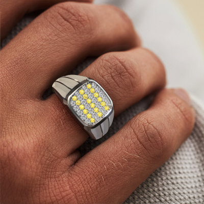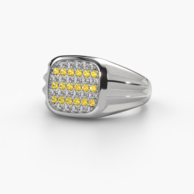 Are you looking for a exclusive white gold pinky ring that is slightly different? Then our square white gold yellow sapphire set Robbert pinky ring is the perfect ring for you! This ring, as shown here, is made of white gold but feel free to customize to your liking. Show them what you are all about with this white gold yellow sapphire Robbert pinky ring, a ring for ambitious men. How do you like this exclusive white gold men's ring? Simply customize this Robbert men's ring, using our online tool. Subsequently, your personal elegant Robbert men's ring will be made by hand by our goldsmiths. Precious metals and gemstones can be customized to your liking. Do you have specific preferences which are unavailable in our online tool? Please feel free to contact us. We will customize your personal exclusive men's ring to your liking.