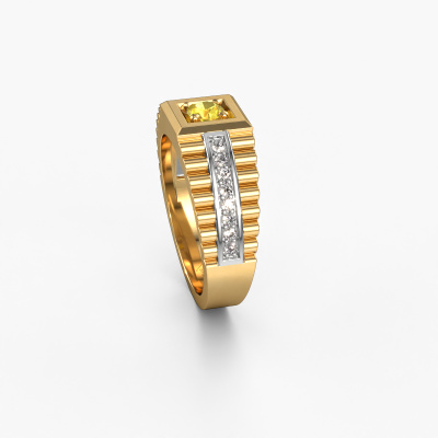 Everyone knows the design of this well-known watch brand. With two colours of gold links, this wide 14 Carat gold Maikel men's ring, is perfectly suited for trendy, successful men. A man who wants to dress to impress with a striking men's ring with 4.2 mm yellow sapphire. Show them what you are made of!Our goldsmiths passionately create your customized men's ring to your liking with the utmost care. The gold men's ring, as shown here, can be customized using our online tool. Feel free to ask our jewel designers for assistance if you want changes made which are unavailable in our online tool. We are happy to answer your questions.