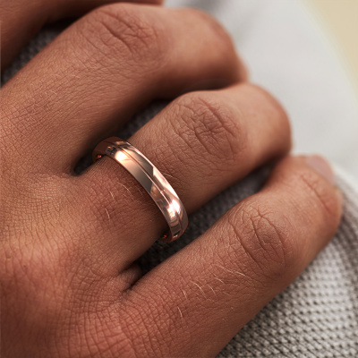 This stunning combination of two precious metals truly symbolizes the special bond between two people! And that is what makes this WH0254M24X ring a special wedding ring, a true symbol of your love! By using a combination of the most modern techniques and ancient crafting, our goldsmith will be able to create your rose gold men's wedding ring with great care. Resulting in a uniquely handmade ring, a sign of love! This modern WH0254M24X wedding ring with full court profile has an ±0.16 in width and has a shiny finish. After ordering your wedding ring, our goldsmith will start creating your wedding ring immediately. Did you know we use the latest modern techniques, combined with ancient craftsmanship? This helps to create a 3D design of your jewel. You can order a dummy ring, if you please. This way you can check if the wedding ring meets your standard. Then, our goldsmith, who strives for perfection, will create your ring in our own artisan studio completely by hand. We feel passionate creating a unique ring each time. One which is finished to perfection. In the end, you get a wedding ring which matches your wishes.Do you have specific wishes? Like a shiny ring, or a matte one? A wider band, or a smaller one? The possibilities of this wedding ring are endless. Be sure to contact our designers to adjust your ring to your personal taste. Did you see a ring somewhere, or do you have some special ideas of your own? Then don't hesitate to contact our designers and discuss your ideas for your own set of beautiful wedding rings. We are up for the challenge of creating the ring exactly the way you want it!Because we design our wedding rings ourselves, and deliver it directly to you, we can offer you wedding rings at a price you won't find anywhere else. Our rings are made to order, which helps prevent excess supplies, so we can make you a great price offer.To make it easier for you, we offer a 30 day return policy. Check our terms and conditions.