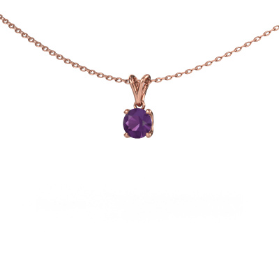 This solitaire pendant Sam RND is both a classic and a trendy piece of jewellery. A solitaire pendant has an open prong setting, therefore, light reflects beautifully on the gemstone. Because the amethyst is set high, this classic pendant is a stunning eye-catcher. We will create your graceful pendant by hand with the utmost care in our DiamondsByMe studio. For maximum shine, our goldsmith sets the amethyst in the rose gold pendant with great care. This graceful pendant is set with round 5 mm amethyst. What could possibly be more beautiful than a personally designed classic pendant, handmade by yours truly? Please, feel free to customize each model by choosing different precious metals and gemstones. This makes your pendant truly unique. This pendant can be customized to your liking. It goes without saying that you can also ask us for help. We are more than willing to assist in designing your Sam RND classic pendant. If you like but still have specific wishes concerning customizing your design, such as adding a gemstone which isn't mentioned in the list, feel free to contact us. We will gladly inform you on different options.Our team of talented, passionate designers add new pendant designs to our online collection daily. Our objective in doing so, is to be able to offer you a wide variety of jewels. Please feel free to request a quote if you have specific wishes for your pendant. We guarantee to make you an offer you can't refuse.By using a combination of the latest modern techniques, combined with ancient crafting, we can make all our pendants in our own studio. Each jewel is made to order. This is advantageous because we can offer you a price you won't find anywhere else.To make it easier for you, we offer a 30 day return policy. Check our terms and conditions.