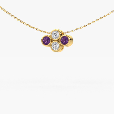 What a beautiful, contemporary pendant! A round pendant to finish your outfit. Buy it from DiamondsByMe. Our goldsmiths use the finest precious metals and gemstones to create our most extraordinary pieces of jewellery. Take this fantasy gold amethyst set Judi pendant, for example. It was selected with great care, because your pendant should only be adorned with the finest amethysten. Our goldsmith will make your pendant by hand and will set the amethyst with great precision. Then it will be finished and polished to perfection, leaving you with a stunning pendant as a result!A customized fantasy round pendant is the perfect gift! New exquisite designs are added daily by our team of passionate goldsmiths. And each design can be customized. Simply customize the precious metals and the colour of gemstones which will be used, for example. This makes your design of the fantasy Judi pendant truly unique!