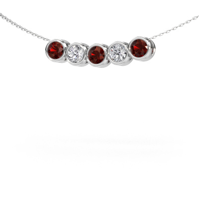 How would you describe your style? Do you like things slightly different? At the very least, this elegant platinum necklace Kim 5 is unique, made especially by jewel designers. Our goldsmith will create your pendant to perfection by hand in our own artisan studio. This fashionable necklace is set with a garnet. These garnet are selected with great care because we believe your elegant necklace should be adorned with nothing less than the finest gemstones available. Wouldn't you agree?What could possibly be more beautiful than a personally designed fashionable necklace, handmade by yours truly? Please, feel free to customize each model by choosing different precious metals and gemstones. This makes your necklace truly unique. This necklace can be customized to your liking. It goes without saying that you can also ask us for help. We are more than willing to assist in designing your Kim 5 fashionable necklace. If you like but still have specific wishes concerning customizing your design, such as adding a gemstone which isn't mentioned in the list, feel free to contact us. We will gladly inform you on different options.
