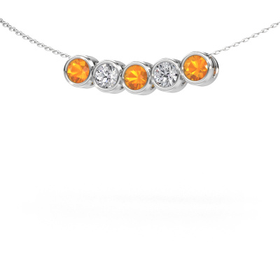 How would you describe your style? Do you like things slightly different? At the very least, this elegant white gold necklace Kim 5 is unique, made especially by jewel designers. Our goldsmith will create your pendant to perfection by hand in our own artisan studio. This fashionable necklace is set with a citrin. These citrin are selected with great care because we believe your elegant necklace should be adorned with nothing less than the finest gemstones available. Wouldn't you agree?What could possibly be more beautiful than a personally designed fashionable necklace, handmade by yours truly? Please, feel free to customize each model by choosing different precious metals and gemstones. This makes your necklace truly unique. This necklace can be customized to your liking. It goes without saying that you can also ask us for help. We are more than willing to assist in designing your Kim 5 fashionable necklace. If you like but still have specific wishes concerning customizing your design, such as adding a gemstone which isn't mentioned in the list, feel free to contact us. We will gladly inform you on different options.