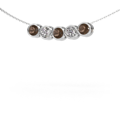 How would you describe your style? Do you like things slightly different? At the very least, this elegant white gold necklace Kim 5 is unique, made especially by jewel designers. Our goldsmith will create your pendant to perfection by hand in our own artisan studio. This fashionable necklace is set with a smokey quartz. These smokey quartz are selected with great care because we believe your elegant necklace should be adorned with nothing less than the finest gemstones available. Wouldn't you agree?What could possibly be more beautiful than a personally designed fashionable necklace, handmade by yours truly? Please, feel free to customize each model by choosing different precious metals and gemstones. This makes your necklace truly unique. This necklace can be customized to your liking. It goes without saying that you can also ask us for help. We are more than willing to assist in designing your Kim 5 fashionable necklace. If you like but still have specific wishes concerning customizing your design, such as adding a gemstone which isn't mentioned in the list, feel free to contact us. We will gladly inform you on different options.