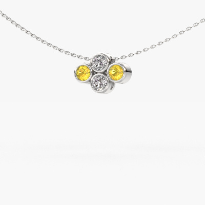 What a beautiful, contemporary pendant! A round pendant to finish your outfit. Buy it from DiamondsByMe. Our goldsmiths use the finest precious metals and gemstones to create our most extraordinary pieces of jewellery. Take this fantasy white gold yellow sapphire set Judi pendant, for example. It was selected with great care, because your pendant should only be adorned with the finest yellow sapphire. Our goldsmith will make your pendant by hand and will set the yellow sapphire with great precision. Then it will be finished and polished to perfection, leaving you with a stunning pendant as a result!A customized fantasy round pendant is the perfect gift! New exquisite designs are added daily by our team of passionate goldsmiths. And each design can be customized. Simply customize the precious metals and the colour of gemstones which will be used, for example. This makes your design of the fantasy Judi pendant truly unique!