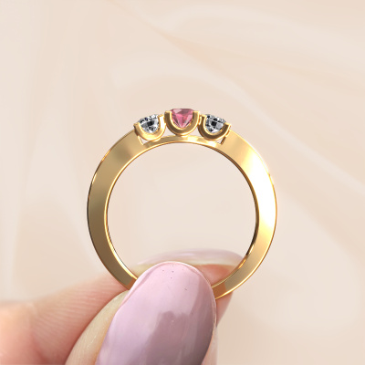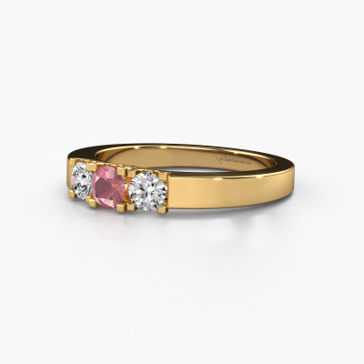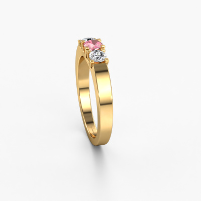 This extraordinary ring is called Selina 1. This type of ring is known as a memoire ring, because its gemstones are set in a continuous line. This makes it easy to combine with other rings. The band of this 14 Carat gold ring is set in a combination of tourmaline pink and diamond 3.7 mm. You can easily choose the combination you prefer online. As you can see, a single tourmaline pink is set in this single alliance gold ring. The memoire ring represents collaboration. And that is precisely what these gemstones do, collaborate. Together they add a beautiful effect to the band of a modern ring! Such a meaningful ring, wouldn't you agree? All our hand selected tourmaline pink are positioned by hand by our expert goldsmith. It's a precise task, which can only be completed successfully through the combination of pure craftsmanship and usage of the latest techniques which give it an optimal effect. To create a perfect reflection of light, all the gemstones have to be perfectly aligned in the same way. During manufacturing, the expert goldsmith will therefore monitor the reflection of light constantly to check whether the tourmaline pink are aligned properly. This requires a skilled hand and a lot of patience but then the end product will be a true piece of art. And that is our mission!By using our modern techniques, we can design and customize the finest quality jewels with the utmost care for you. Our rings are always priced 30 percent lower than other jewellers. We make rings to order, so we don't have to maintain a large stock. If you have a certain budget, we are more than happy to advice you accordingly.New jewellery designs are added to our online collection daily. Our team of passionate designers strive to create extraordinary and diverse designs. Have you seen a ring you like? Please feel free to contact us. Based on a good price/ quality ratio, we will make you an offer you can't refuse!To make it easier for you, we offer a 30 day return policy. Check our terms and conditions.