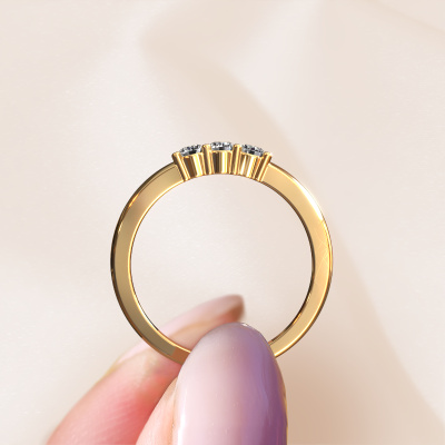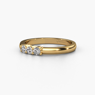This extraordinary ring is called Yasmin 3. This type of ring is known as a memoire ring, because its gemstones are set in a continuous line. This makes it easy to combine with other rings. The band of this 14 Carat gold ring is set in a combination of zirconia and lab grown diamond 3 mm. You can easily choose the combination you prefer online. As you can see, a single zirconia is set in this single alliance gold ring. The memoire ring represents collaboration. And that is precisely what these gemstones do, collaborate. Together they add a beautiful effect to the band of a classic ring! Such a meaningful ring, wouldn't you agree? All our hand selected cz-stones are positioned by hand by our expert goldsmith. It's a precise task, which can only be completed successfully through the combination of pure craftsmanship and usage of the latest techniques which give it an optimal effect. To create a perfect reflection of light, all the gemstones have to be perfectly aligned in the same way. During manufacturing, the expert goldsmith will therefore monitor the reflection of light constantly to check whether the cz-stones are aligned properly. This requires a skilled hand and a lot of patience but then the end product will be a true piece of art. And that is our mission!By using a combination of the latest modern techniques, combined with ancient crafting, we can make all our rings in our own studio. Each jewel is made to order. This is advantageous because we can offer you a price you won't find anywhere else.Our talented designers add new designs to our online collection daily. Together they create a diverse collection of the finest jewellery. If you prefer to make a ring according your own design, please feel free to request a quote. We will make you an amazing offer, based on quality and price.To make it easier for you, we offer a 30 day return policy. Check our terms and conditions.