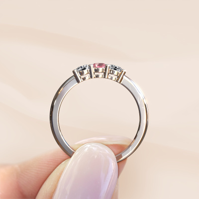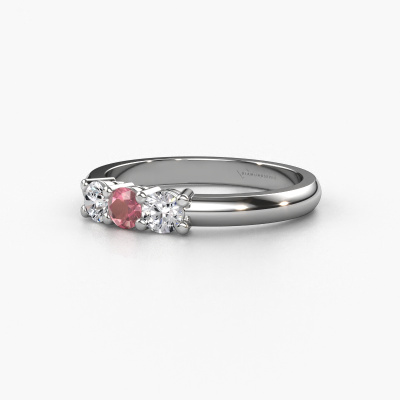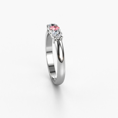 This extraordinary ring is called Michelle 3. This type of ring is known as a memoire ring, because its gemstones are set in a continuous line. This makes it easy to combine with other rings. The band of this platinum ring is set in a combination of tourmaline pink and lab grown diamond 3.7 mm. You can easily choose the combination you prefer online. As you can see, a single tourmaline pink is set in this single alliance platinum ring. The memoire ring represents collaboration. And that is precisely what these gemstones do, collaborate. Together they add a beautiful effect to the band of a classic ring! Such a meaningful ring, wouldn't you agree? All our hand selected tourmaline pink are positioned by hand by our expert goldsmith. It's a precise task, which can only be completed successfully through the combination of pure craftsmanship and usage of the latest techniques which give it an optimal effect. To create a perfect reflection of light, all the gemstones have to be perfectly aligned in the same way. During manufacturing, the expert goldsmith will therefore monitor the reflection of light constantly to check whether the tourmaline pink are aligned properly. This requires a skilled hand and a lot of patience but then the end product will be a true piece of art. And that is our mission!Are you on a budget? Please feel free to contact us, so we can go discuss your options. We offer our rings at guaranteed best price, because we make them to order. You won't find such a price anywhere else!