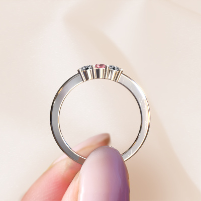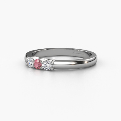 This extraordinary ring is called Yasmin 3. This type of ring is known as a memoire ring, because its gemstones are set in a continuous line. This makes it easy to combine with other rings. The band of this platinum ring is set in a combination of tourmaline pink and lab grown diamond 3 mm. You can easily choose the combination you prefer online. As you can see, a single tourmaline pink is set in this single alliance platinum ring. The memoire ring represents collaboration. And that is precisely what these gemstones do, collaborate. Together they add a beautiful effect to the band of a classic ring! Such a meaningful ring, wouldn't you agree? All our hand selected tourmaline pink are positioned by hand by our expert goldsmith. It's a precise task, which can only be completed successfully through the combination of pure craftsmanship and usage of the latest techniques which give it an optimal effect. To create a perfect reflection of light, all the gemstones have to be perfectly aligned in the same way. During manufacturing, the expert goldsmith will therefore monitor the reflection of light constantly to check whether the tourmaline pink are aligned properly. This requires a skilled hand and a lot of patience but then the end product will be a true piece of art. And that is our mission!By using a combination of the latest modern techniques, combined with ancient crafting, we can make all our rings in our own studio. Each jewel is made to order. This is advantageous because we can offer you a price you won't find anywhere else.Our talented designers add new designs to our online collection daily. Together they create a diverse collection of the finest jewellery. If you prefer to make a ring according your own design, please feel free to request a quote. We will make you an amazing offer, based on quality and price.To make it easier for you, we offer a 30 day return policy. Check our terms and conditions.